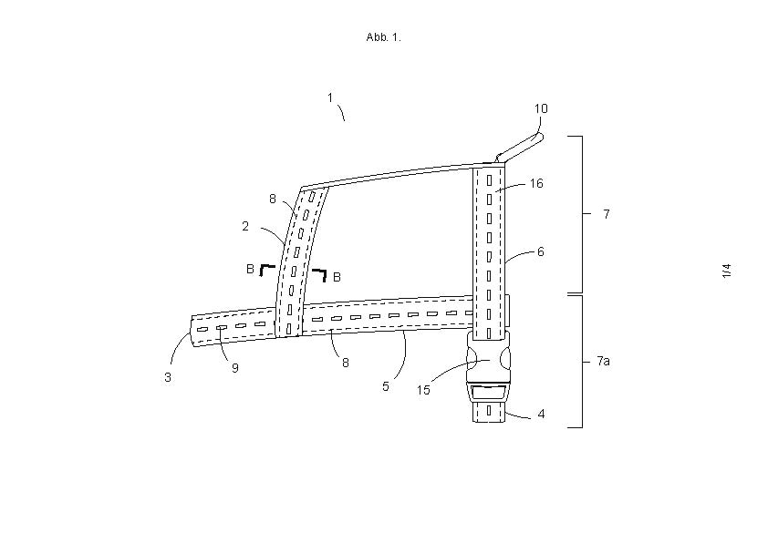 – Gegenstand meines Gebrauchsmusters ist ein Gurtgeschirr für Hunde, dessen Material ein mit synthetischen Fasern verstärkter Stoff ist, auf dem Licht reflektierende und phosphoreszierende Streifenelemente angebracht sind.