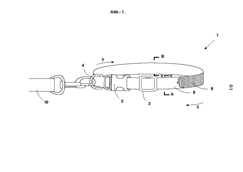 – Gegenstand des Gebrauchsmusters ist ein der Führung und dem Halten des Hundes dienendes phosphoreszierendes Hundehalsband, dessen Material ein aus synthetischen Fasern bestehender und vorteilhaft als Gurt ausgebildeter Stoff ist, der über einen die Oberfläche bedeckenden phosphoreszierenden Überzug verfügt.